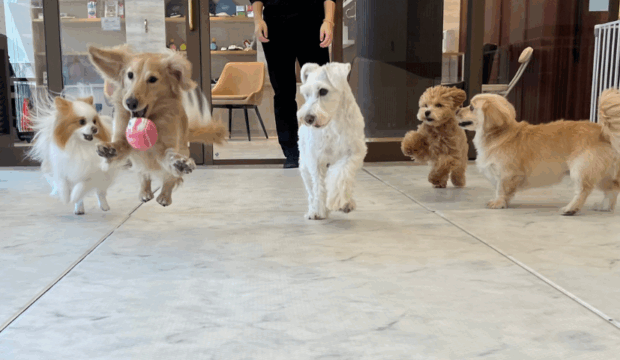 プロのトレーナーがわんちゃんたちを性格なども配慮しながら、楽しく盛り上げて遊びます。